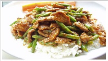 chicken, pork, and beef are popular