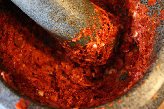 red chili peppers and a host of spices from